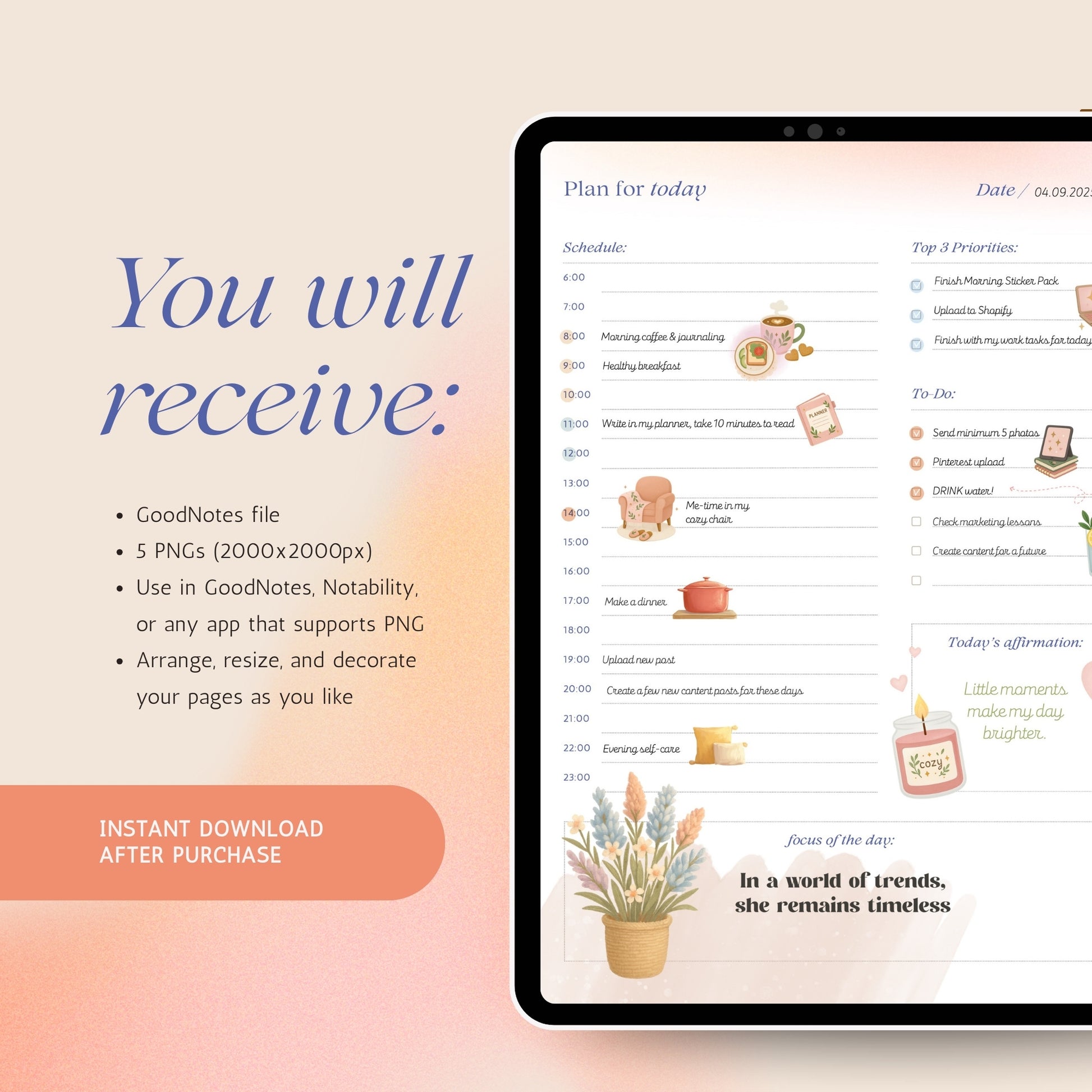 Perfect for GoodNotes, Notability, or any digital planner. Add them to your pages to create a calming atmosphere and make everyday planning feel like self-care.