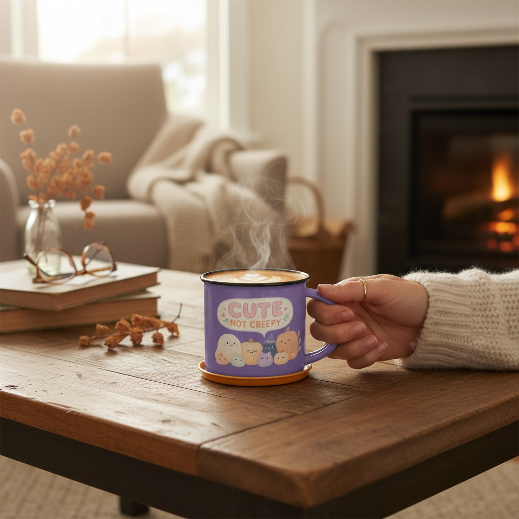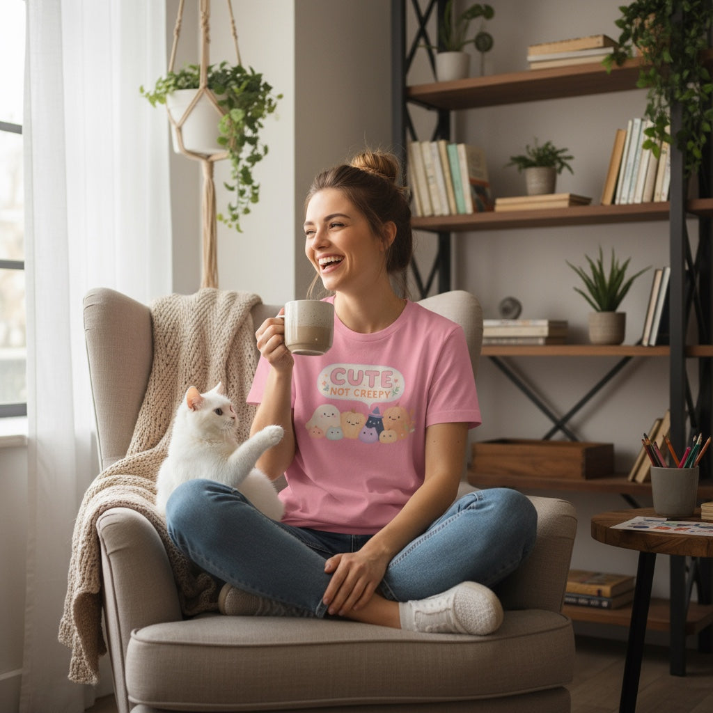 Add a touch of cozy cuteness to Halloween with this pastel “Cute Not Creepy” design. Featuring smiling pumpkins, a friendly ghost, a witchy character, and soft pastel colors, this illustration is perfect for creating fun seasonal items without the scary vibe. Use it on t-shirts, hoodies, tote bags, mugs, wall art, or digital projects – it’s an instant way to bring playful autumn magic into your creations.