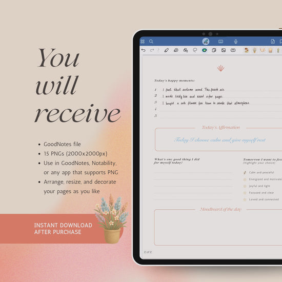 Works in GoodNotes, Notability, or any app that supports PNGs