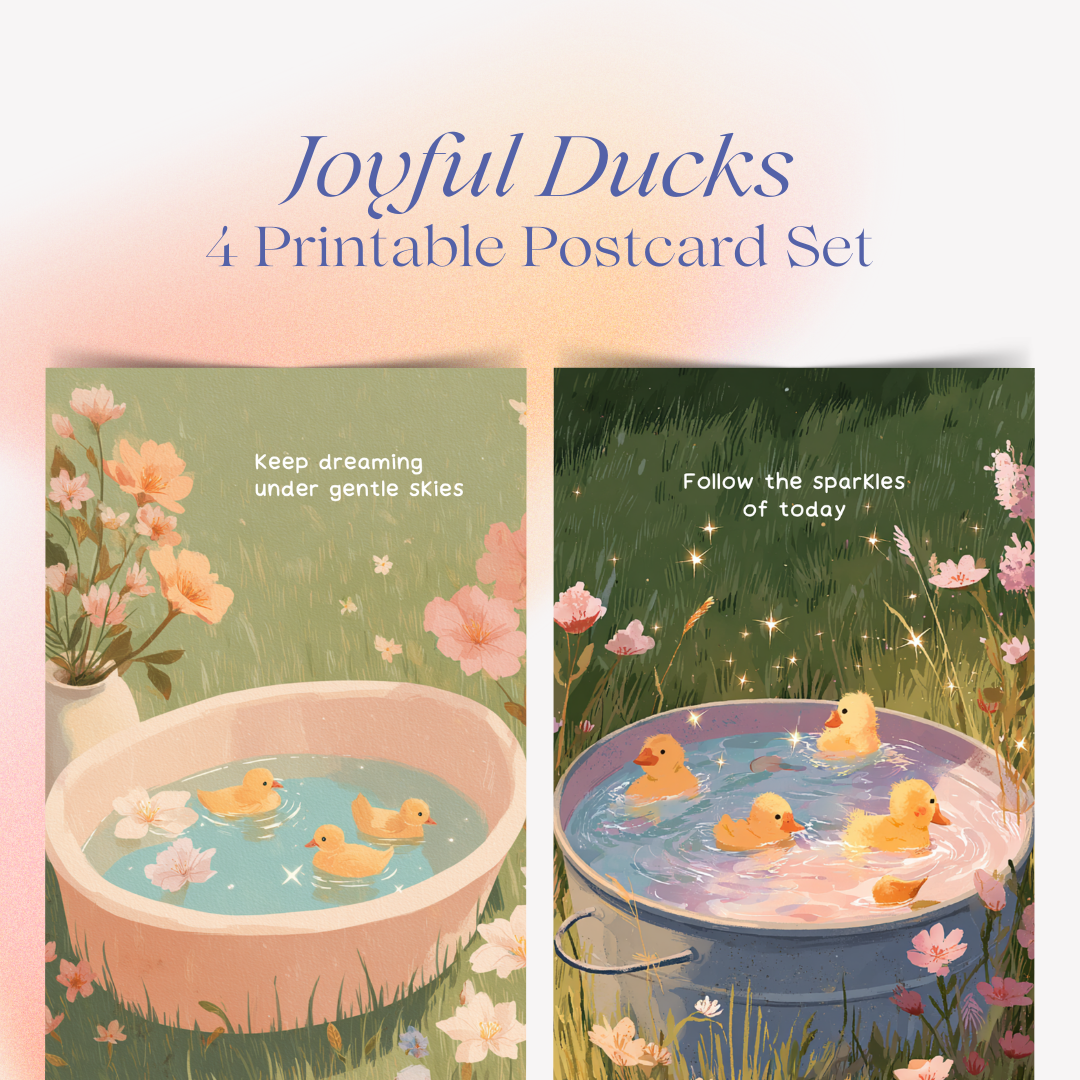 Duckling Dreams Postcard Set | 4 Printable Cards