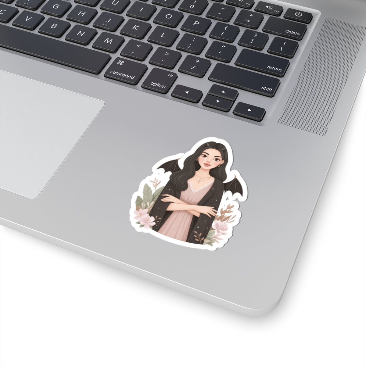 Add a touch of cuteness to your life with this adorable girl in a Halloween bat costume sticker. Perfect for decorating laptops, journals, and windows. Ideal for adults who love Halloween celebrations and cute designs.