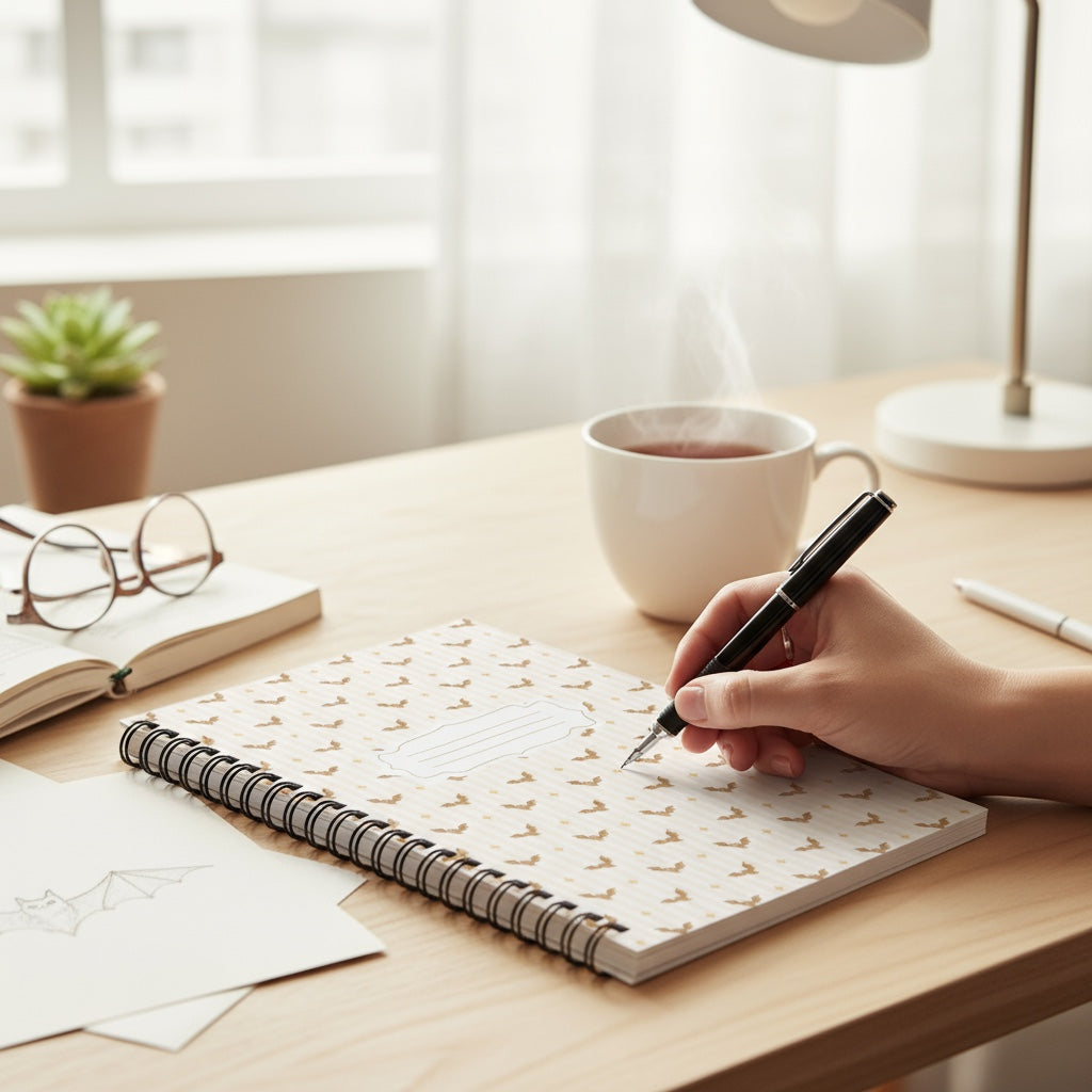 This Halloween Cute Notebook with bats is perfect for jotting down notes, thoughts, and ideas. The ruled lines and 90gsm paper make it ideal for writing, while the metal spiral binding adds a fancy touch and allows for easy page removal. With a document pocket for added storage, this notebook is great for students, writers, and anyone who loves Halloween.