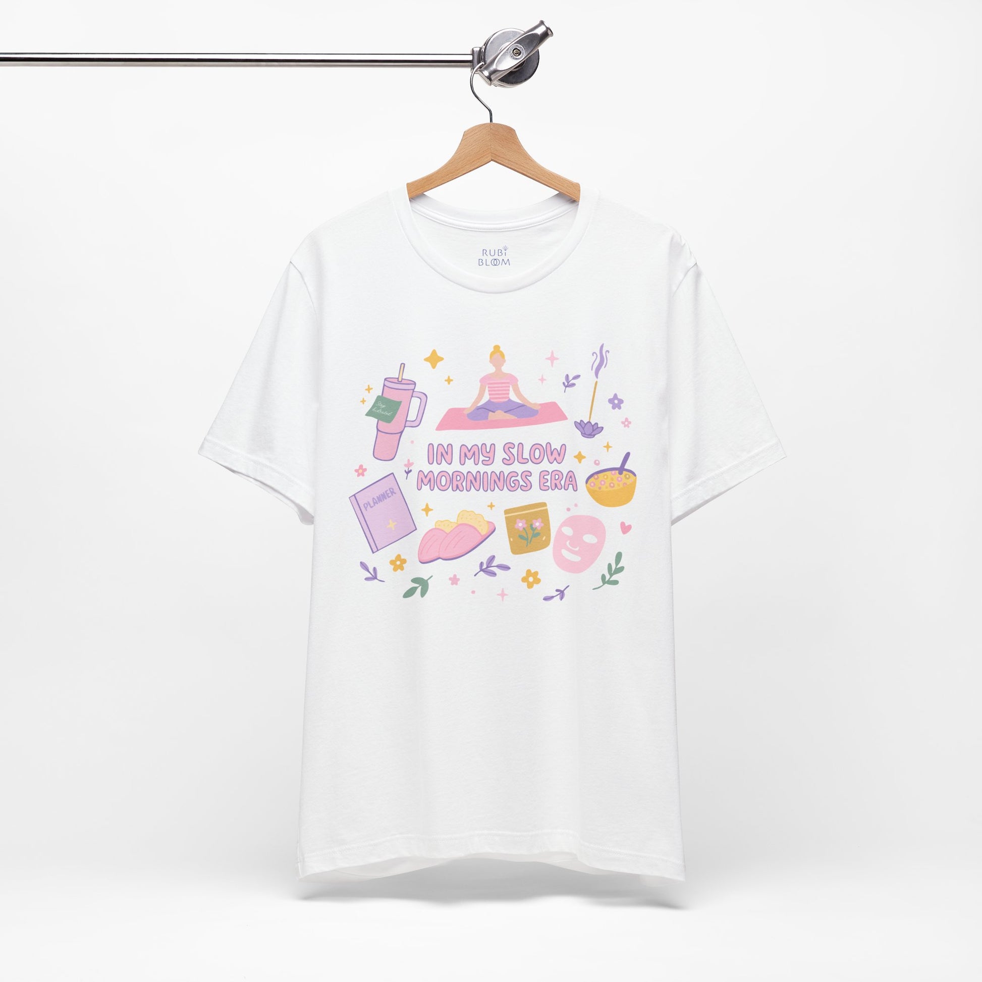 Embrace the slow mornings Era T-Shirt, perfect for those cozy and relaxed days at home or running errands. The lightweight fabric and retail fit make it ideal for active and leisure wear. This T-Shirt is relevant for adults and is perfect for casual and semi-formal settings.